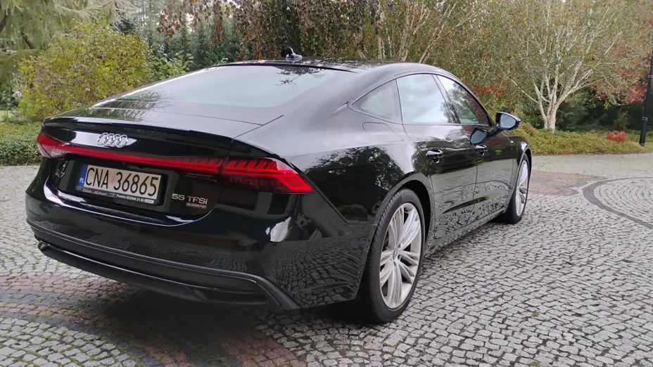 Audi A7/C8, 55 TFSI MHEV, wersja S-line kupione w polskim salonie, w rodzinie od samego początku, użytkowane prywatnie, zadbane. Zrobiony Stage 1, co dało zwiększenie mocy do 406KM i momentu do 600 Nm.