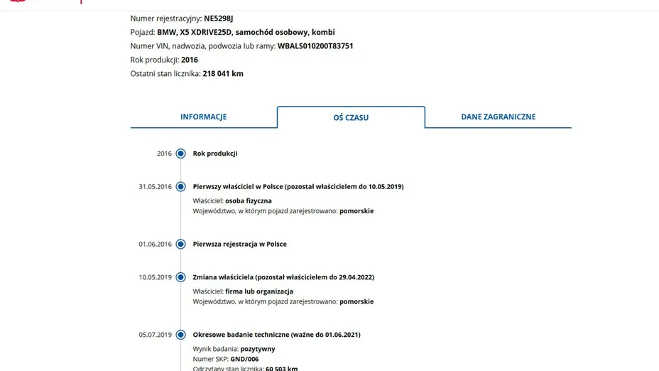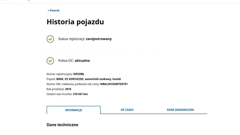PONIŻEJ PODAJE DANE NIEZBĘDNE DO DARMOWEJ WERYFIKACJI HISTORII PREZENTOWANEGO AUTA NA STRONIE MINISTERSTWA TRANSPORTU