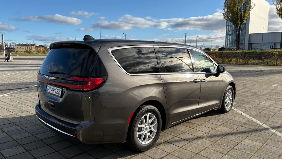 Chrysler Pacyfica z 2023 roku z bardzo niskim przebiegiem w idealnym stanie technicznym i wizualnym na zewnątrz jak i wewnątrz pojazdu.