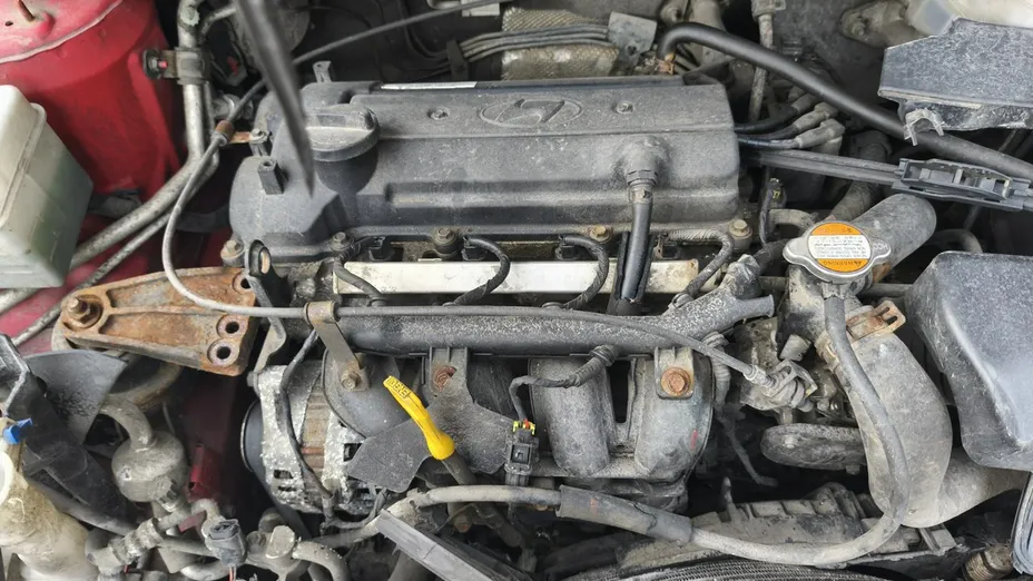 Samochód jest jak widać na zdjęciu rozbity przodem, poduszki powietrzne nie wystrzeliły, silnik odpala.