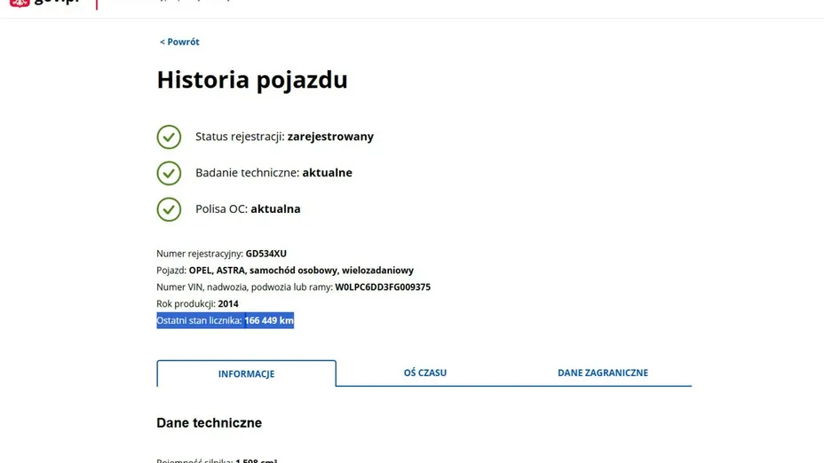 PONIŻEJ PODAJE DANE NIEZBĘDNE DO DARMOWEJ WERYFIKACJI HISTORII PREZENTOWANEGO AUTA NA STRONIE MINISTERSTWA TRANSPORTU