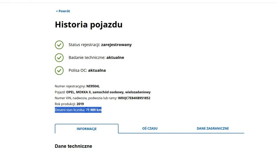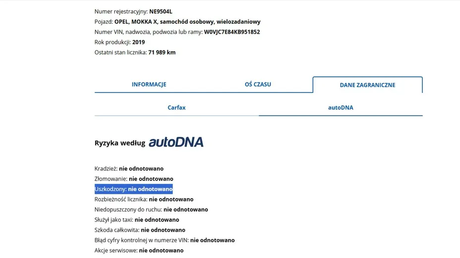 PONIŻEJ PODAJE DANE NIEZBĘDNE DO DARMOWEJ WERYFIKACJI HISTORII PREZENTOWANEGO AUTA NA STRONIE MINISTERSTWA TRANSPORTU