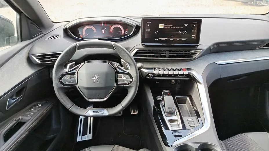 - Kierownica pokryta skórą licową, z metalowymi wstawkami oraz logiem GT