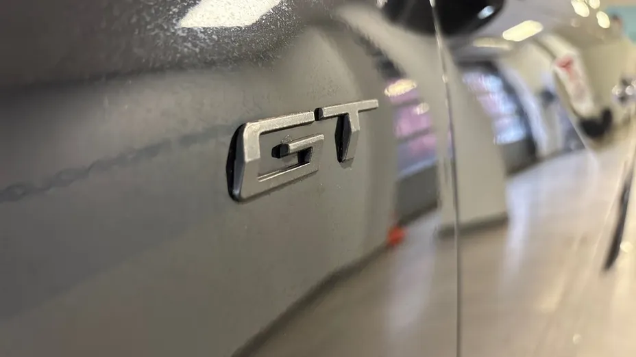 - Kierownica pokryta perforowaną skórą licową z chromowanym wykończeniem i emblematem GT
