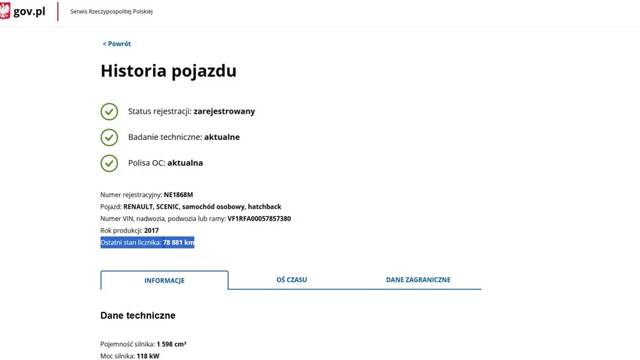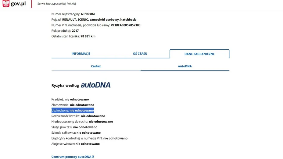 PONIŻEJ PODAJE DANE NIEZBĘDNE DO DARMOWEJ WERYFIKACJI HISTORII PREZENTOWANEGO AUTA NA STRONIE MINISTERSTWA TRANSPORTU