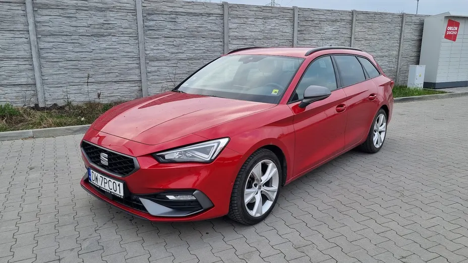Seat Leon o mocy 130 KM w wersji FR, czyli bogato wyposażonej. Na pokładzie m.in..: pełne oświetlenie LED, trzystrefowa klimatyzacja automatyczna, Front Assist, Park Assist, Lane Assist, tempomat, system rozpoznawania zmęczenia kierowcy, system Start&Stop, czujniki parkowania, oświetlenie ambientowe wnętrza oraz Android Auto / Apple CarPlay.