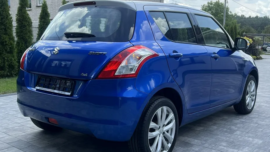 Suzuki Swift 2014r z napędem 4x4. Jeden właściciel od nowości. Fabrycznie nadwozie dwukolorowe. Najbogatsza wersja wyposażenia dostępna w tym modelu, m.in.: podgrzewane fotele i lusterka, fabryczne radio ze sterowaniem w kierownicy, klimatronik, Isofix, elektryczne szyby przód i tył, centralny zamek, system bezkluczykowy, szyberdach uchylany i odsuwany, gniazdo USB, komputer pokładowy, halogeny, czujniki parkowania tył, lampy do jazdy dziennej led, tempomat, przyciemniane szyby. Perfekcyjny stan techniczny, wizualny i blacharski. Bezwypadkowy, nadwozie bez uszkodzeń, wszystkie szyby fabryczne, wnętrze czyste i zadbane, technicznie 100% ok, zero korozji, nigdy nie konserwowany - całe podwozie w oryginale. Regularnie serwisowany co potwierdza książka serwisowa. Oryginalny przebieg 150tyśkm potwierdzony dokumentami, dodatkowo przebieg potwierdzamy wpisem na fakturze. Dwa fabryczne kluczyki i komplet książek. Zarejestrowany i opłacony. Wystawiam fakturę, kupujący nie płaci podatku 2% w urzędzie skarbowym.