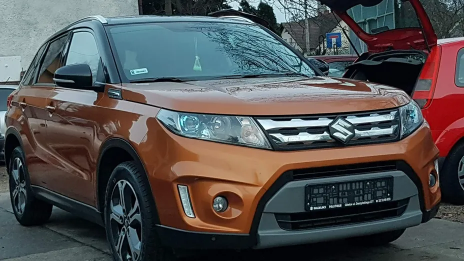 W ofercie posiadamy samochody krajowe obecnie wystawiamy do sprzedaży SUZUKI Vitarę PREMIUM 1.6 120 KM. Z AUTOMATYCZNĄ SKRZYNIĄ BIEGÓW oraz z najlepszym dostępnym jeszcze wtedy silnikiem wolnossącym nadającym się do montażu LPG , nadwozie w wersji dwukolorowej z czarnym dachem i pomarańczowym nadwoziem i w bardzo dobrym wyposażeniem min. Przednie swiatła drogowe ledowe , siedzenia to alkantra (półskóra) , niebieskie ringi nawiewów powietrza , klimatronik dwustrefowy oraz wiele innych . Samochód jest wyjątkowo zadbany i jest w bardzo dobrym stanie technicznym oraz wizualnym , od 1-właściciela pana w starszym wieku ok 70 lat .KUPIONY ZOSTAŁ W POLSKIM SALONIE,garażowany w domu prywatnym,bez uszkodzeń ,zarysowań i otarć lakierniczych oraz zagięć na nadwoziu .Nie miał robionych żadnych poprawek lakierniczych i nie wymaga takowych.Jest serwisowany przez cały okres eksploatacji w ASO Suzuki.Posiada oryginalne opony letnie oraz wszystkie fabryczne szyby .Do samochodu dołączone są kompletne dokumenty zakupu samochodu nowego ,instrukcje obsługi ,książki serwisowe,kluczyki zapasowe , i inne oraz faktury za poszczególne przeglądy serwisowe na podstawie których można odtworzyć całą historie eksploatacyjną samochodu.Dodatkowo posiada dzielone siedzenia tylne ,regulacje pionową siedzeń i kierownicy w trzech płaszczyznach, niefabryczne odcięcie zapłonu zamontowane przez właściciela samochodu,itp.Tapicerki nie noszą żadnych śladów zużycia,nie mają plam,przetarć i nie są nigdzie porysowane w samochodzie także nigdy nie było palone . Istnieje możliwość zamiany samochodu na inny i pozostawienia swojego auta w rozliczeniu oraz zakupu na Raty.SAMOCHÓD JEST OBJĘTY PISEMNĄ KOMISOWĄ GWARANCJĄ NA BEZWYPADKOWOŚĆ ,NA PRZEBIEG I NA LEGALNOŚĆ POCHODZENIA.