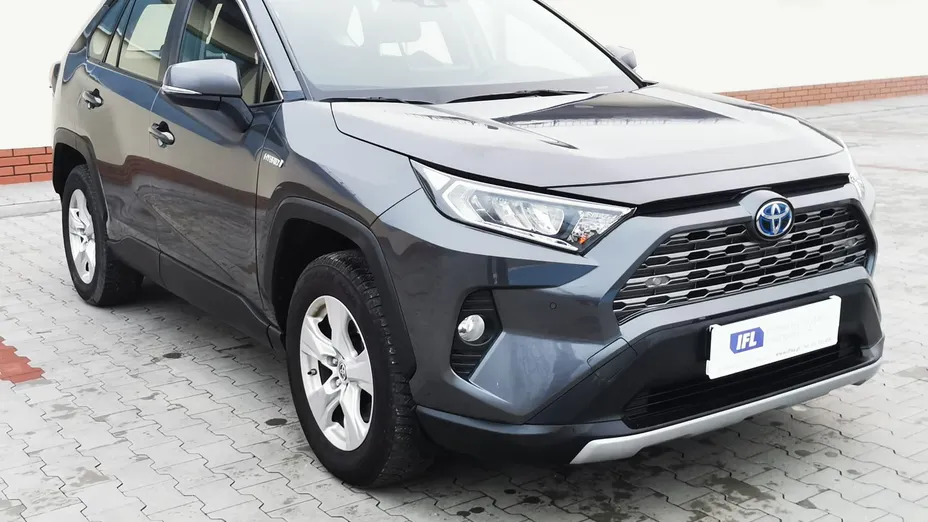 Toyota RAV4 Hybrid z 2022 roku, w wersji Comfort, z silnikiem 2.5 Hybrid o mocy 177 KM i automatyczną skrzynią e-CVT. Popularny SUV hybrydowy Toyoty, ceniony za niezawodność, niskie spalanie i komfort jazdy.