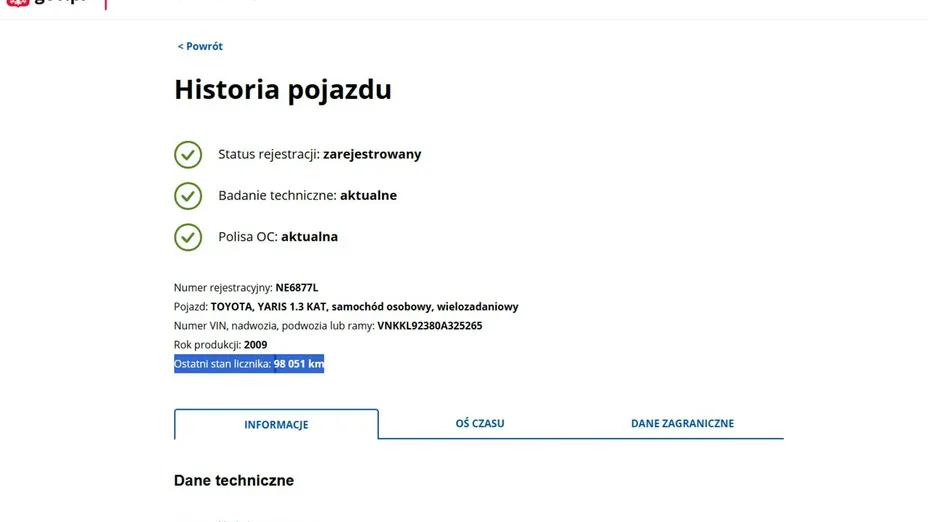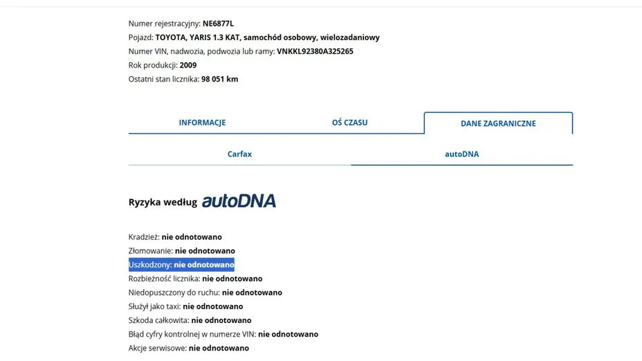 PONIŻEJ PODAJE DANE NIEZBĘDNE DO DARMOWEJ WERYFIKACJI HISTORII PREZENTOWANEGO AUTA NA STRONIE MINISTERSTWA TRANSPORTU