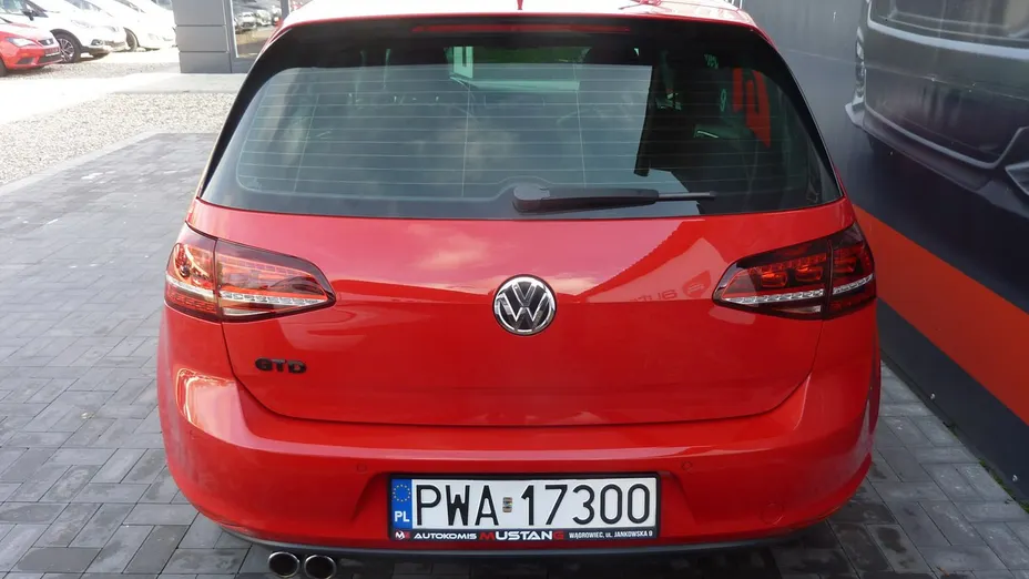Volkswagen Golf VII GTD z najbogatszym wyposażeniem, w przepięknym czerwonym kolorze TORNADO RED z mocnym, dynamicznym, ekonomicznym i niezawodnym silnikiem diesla 2.0 TDI 184 konie z automatyczną skrzynią biegów i niskim przebiegiem 182 tys. km.